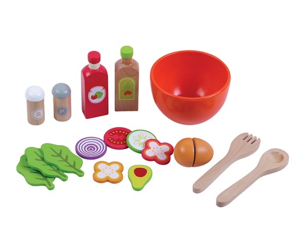 משחק הכנת סלט מעץ. מגיע עם 17 חלקים.